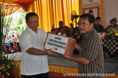 Bantuan sebesar Rp 405.107.024.000 tersebut diserahkan langsung oleh Menteri Koordinator Kesejahteraan Rakyat (Menko Kesra) RI, HR Agung Laksono, dalam kunjungan kerjanya di Kabupaten Banyumas, Jum’at (18/1) di lapangan Desa Notog Kecamatan Patikraja, disaksikan oleh para pejabat kementrian di bawah koordinasi Kemenko Kesra, pejabat Provinsi Jawa Tengah dan jajaran Muspida serta para pimpinan instansi vertikal setempat.