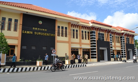 BLORA - Gedung Samin Surosentiko diresmikan Bupati Blora Djoko Nugroho (31/1). Gedung megah berlantai dua tersebut akan ditempati BPE, BPD Jateng, BPR Blora, Dekranasda dan LPSE. Bupati Djoko berharap agar petugas yang menempati gedung Samin Surosentiko bisa memberikan pelayanan yang baik kepada masyarakat.
