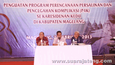 Sebagai wujud perhatian terhadap peningkatan derajad kesehatan ibu, bayi baru lahir dan anak, Pemerintah Kabupaten Magelang melaksanakan berbagai upaya percepatan penurunan angka Kematian Ibu serta Anka Kematian Bayi. Salah satu upayanya adalah melalui kegiatan program perencanaan persalinan dan pencegahan komplikasi (P4K). “P4K difasilitasi oleh bidan desa dalam rangka peningkatan peran aktif suami,keluarga dan masyarakat dalam merencanakan persalinan yang aman dan persiapan menghadapi komplikasi pada ibu hamil, termasuk perencanaan pemakaian alat kontrasepsi pasca persalinan “ tegasnya.